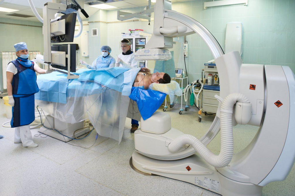 Диагностика и лечение в нашем отделении проводятся в современной гибридной рентген-операционной, оборудованной ангиографической установкой фирмы Toshiba (Япония) с применением передовых медицинских технологий и высококачественного расходного материала. Отличительной особенностью является то, что почти 90% всех операций мы выполняем через «лучевой доступ» что позволяет пациенту в послеоперационном периоде чувствовать себя более комфортно: раньше вставать с постели, двигаться практически без ограничений и в кратчайшие сроки выписываться домой.