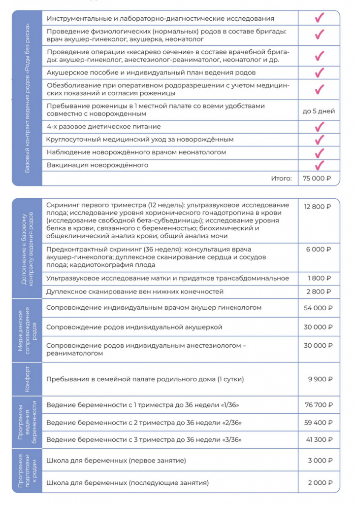 При заключении и оплате «Базового контракта» вас в родах будет сопровождать индивидуальная акушерка.